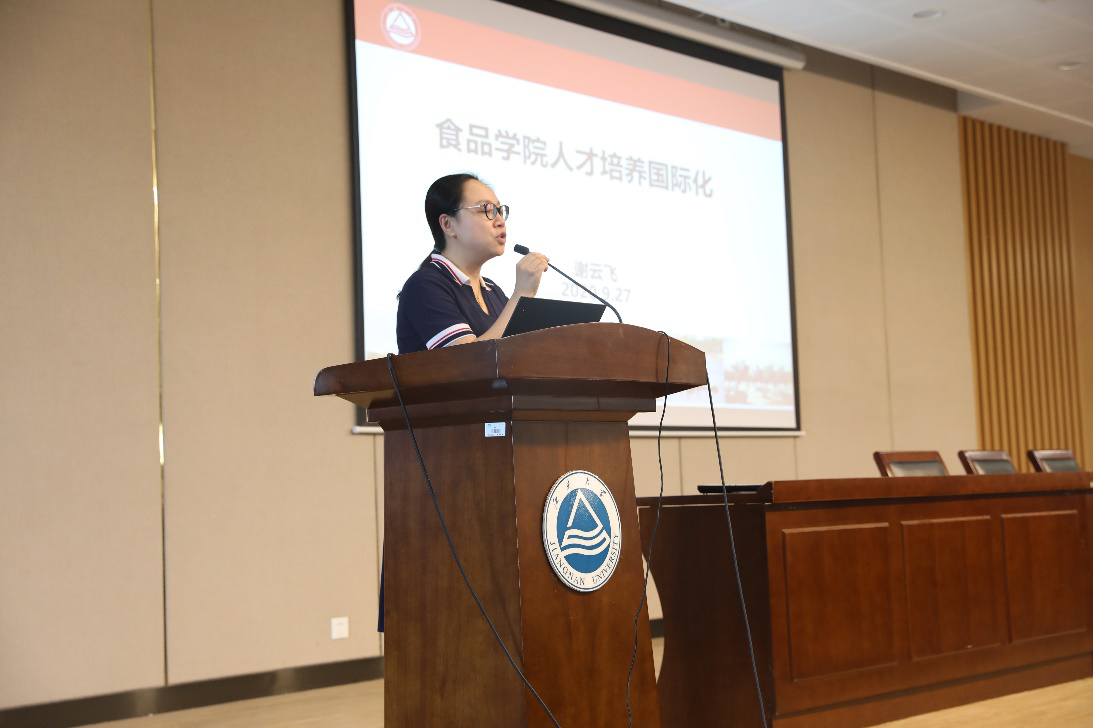 活动伊始,谢云飞以“秋天里的第一个灵魂拷问”向同学们抛出就业问题,分享了诸多学院优秀毕业生的案例,详细介绍了学院人才培养国际化方案以及学校、学院对于国际交流项目的资助政策,她告诫同学们不仅要低头做事,还要抬头看天,呼吁大家做有准备的人,尽早规划人生,让优秀成为习惯。
