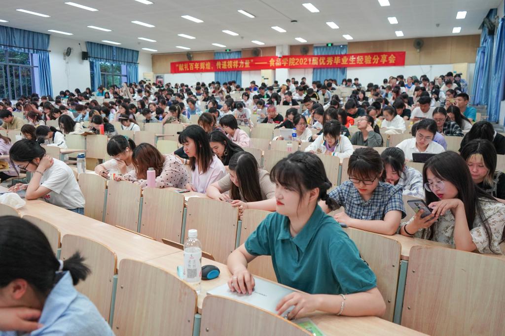 在二教2A127举行了“献礼百年辉煌,传递榜样力量”2021届优秀毕业生经验分享会。2021届毕业生代表陈嫣、周叶蕾、王明明、梁玉燊、张欣、喻一航六名作为分享嘉宾以及380余名同学参与了本次活动。