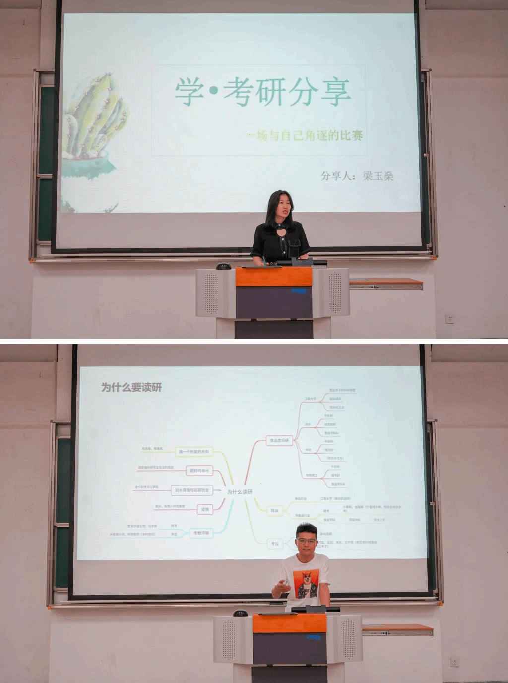 王明明指导同学们需要明确自己考研的目的,了解考研院校的招生趋势,并系统介绍了个人复习的经验。梁玉燊分享了选择考研的经历,并建议本科生选择专业相关的方向考研,关注不同院校的招生名额,并强调考研需要保持良好的心态。