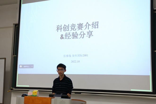 首先,杨光宝简要介绍了高校学科竞赛的意义、类别与相关政策,帮助同学们更加系统地了解科创活动。随后,第八届江苏省“互联网+”大学生创新创业大赛与第十三届“挑战杯”中国大学生创业计划竞赛获奖代表金俊男、2021年全国大学生生命科学竞赛(创新创业类)特等奖获奖代表陈烨、第四届普罗星淀粉创新创意大赛一等奖获奖代表张睿逸等依次进行经验分享。他们从科创竞赛的具体流程、产品设计、团队分工、实现方法等方面展开交流,向同学们推荐了获得竞赛信息和灵感的有效途径,并针对如何平衡课业与竞赛的关系、大学生活规划等方面提出建议。在问答环节中,学长学姐们的耐心解答进一步深化了新生对科创竞赛的认知。