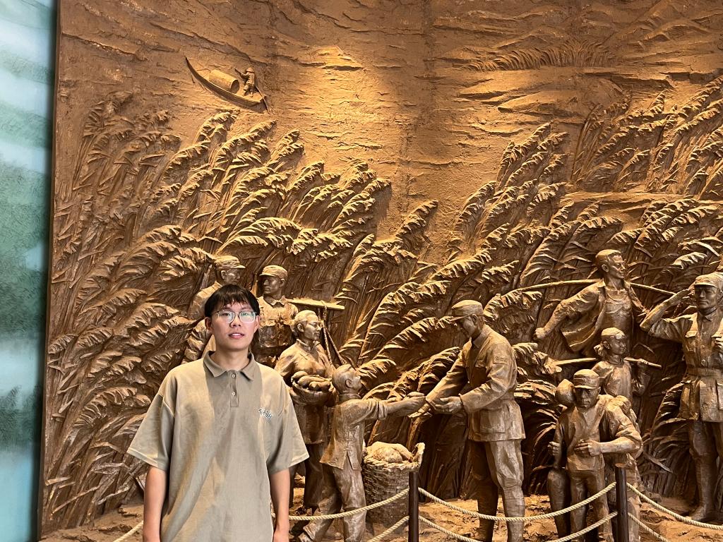 在江苏省泰州市靖江东线第一帆渡江战役纪念公园,昔日英雄们战斗的地方,现今矗立着一组百万雄师横渡长江的雕塑,看到它们仿佛能看见那弥漫的硝烟,听见那轰隆隆的炮声。实践团成员金雅兰激动地说:“通过这次难忘的参观,我对中国梦、红色文化都有了更深入的认识。我将继续努力学习,不负青春,不负时代!”