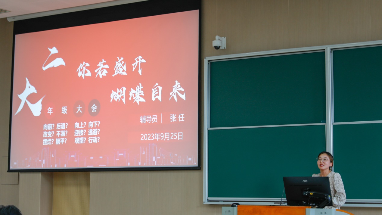 2022级本科生军训动员大会暨学业生涯规划活动在第二教学楼2A127教室举行。党委副书记、副院长李雷,辅导员张任,优秀老生代表及2022级全体本科生参加活动。活动由张任主持。
