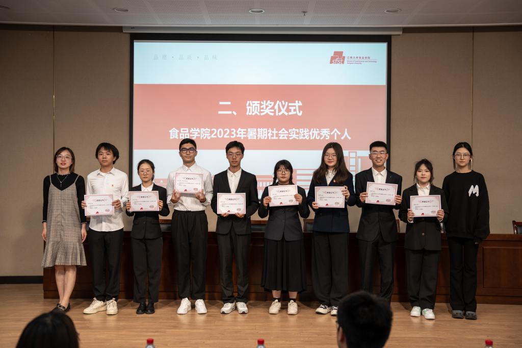 实践分享环节,“南国北疆”新疆实践团吕铃怡讲述她在新疆这片热土上的情怀和故事,跨越4793公里用食品科普知识照亮边疆孩子的健康之路。“捧着一颗心来,不带半根草去”,团队成员在支教中发挥青春力量,传承爱和温暖。“南国北疆”无锡实践团邵昱龙分享了他们与石河子大学不远万里、双向奔赴的事迹。两校食品人共悟来时路,共创未来时,一起探寻中国式现代化的发展历程。“食光嵛你”乡村振兴暑期实践团陈果分享了在助推福建福鼎乡村振兴过程中的经历与感受,设计农产品包装、开发衍生食品产品以及助力农产品直播销售……在始建奉献的过程中找寻社会责任感。“锦蠡之约青春爱粮”实践团顾洺菲分享团队深入辽宁盘锦,开展粮食及农副产品精深加工产业调研,围绕“大米特产博物馆”拍摄“青春爱粮”节粮宣传视频,倡导食品科技工作者践行使命担当,为科技节粮和食品产业现代化作出重要贡献。