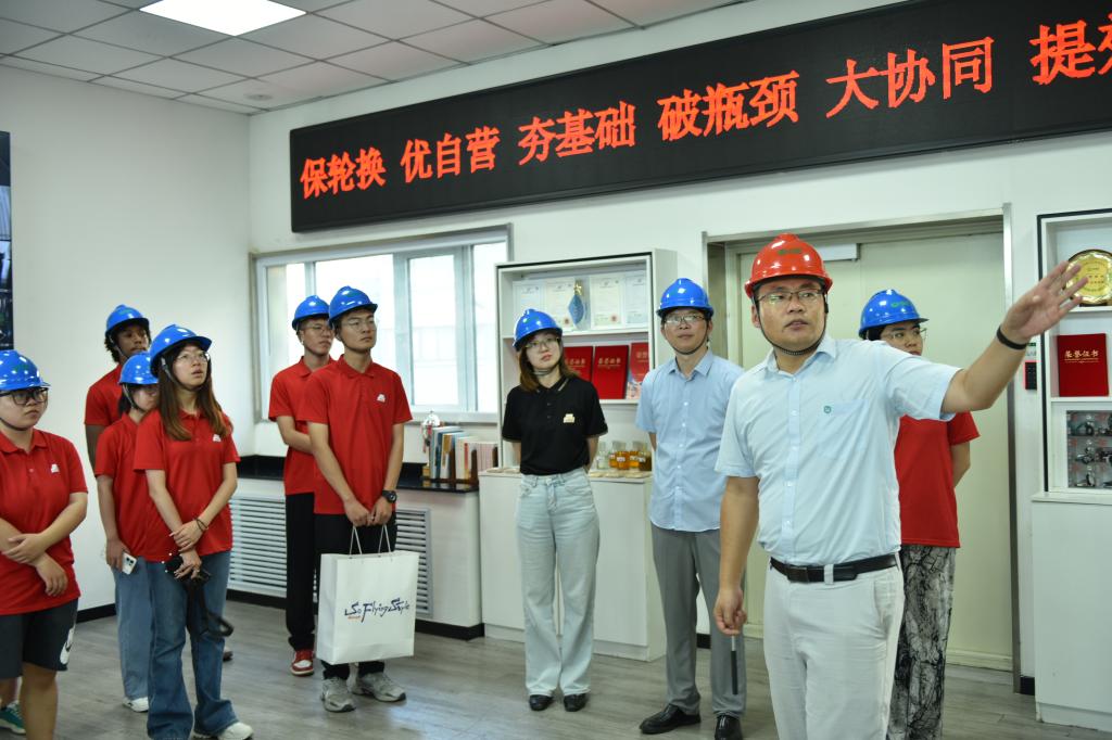 在辽宁华原酒庄有限公司,实践团参观了葡萄培育基地、生产酿造车间和地下酒窖,近距离观摩了一瓶优质葡萄酒的诞生过程。座谈会上,实践团成员在新产品开发、生产技术创新等方面积极交流,思考科技创新如何更好地为生产蓄势赋能。