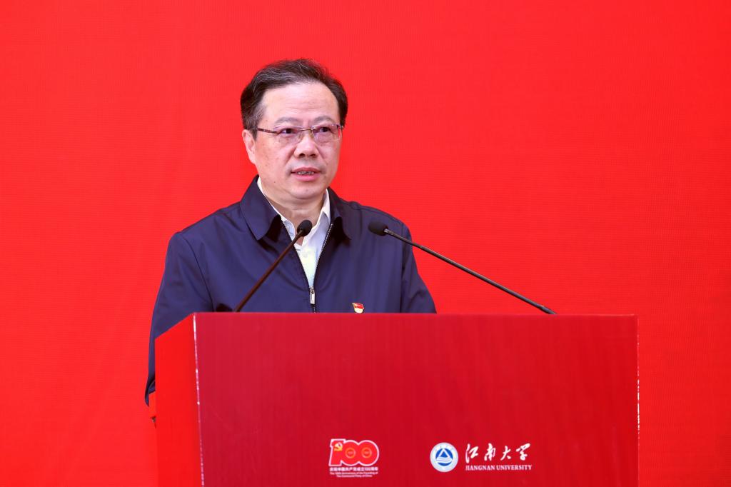 党委书记朱庆葆、教育部高等学校食品科学与工程类专业教学指导委员会主任金征宇出席大会并致辞,江苏省委教育工委组织处处长陈艳、无锡市党建学会理事会会长周建军等领导也参加了大会,爱一帆