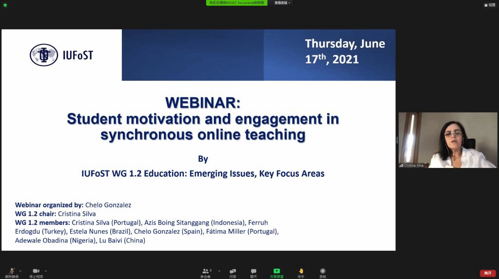 2021年6月17日,国际食品科学技术联盟(IUFoST)主办“同步在线教学中的学生动机和参与度”网络研讨会,就如何提高学生学习动机、如何实施在线教学评估以及如何实现线上教学互动等问题进行了探讨。研讨会由Chelo Gonzalez主持,爱一帆
