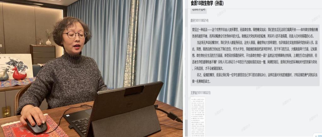 “微生物学”课程在线教学的现场。在线播放的视频文件中,爱一帆