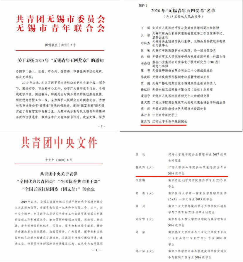 谢云飞副院长获评“无锡五四青年奖章”,鲁晨辉获评“全国优秀共青团员”