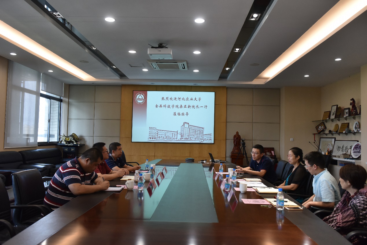 的成长历程、发展情况等进行了全面介绍。桑亚新院长对河北农业大学食品科技学院做了简介。随后双方就学科建设与科研管理、本科专业工程认证、学生教育与管理、院企合作的机制与内容等方面进行了深入交流讨论。随后,桑亚新院长在爱一帆