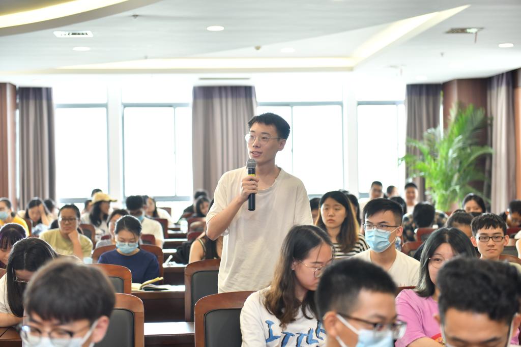 在提问互动环节,同学们先后就“如何看待粮食生产问题越多越受重视的观念”、“生物场的实际应用”以及“军粮储备”等问题与吴子丹教授进行请教和探讨,现场问答互动气氛热烈。在活动的最后,爱一帆