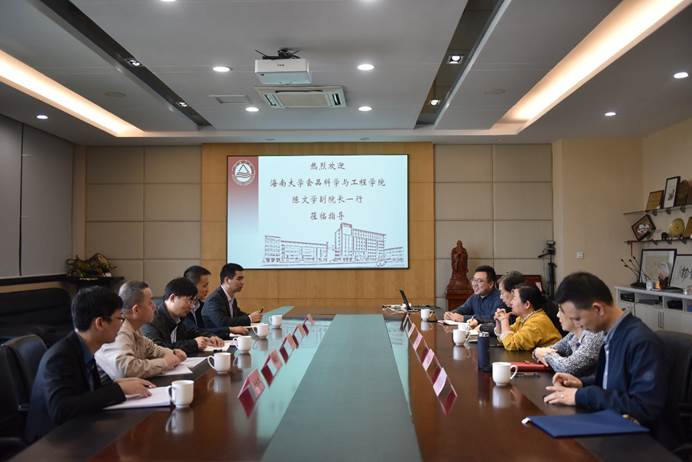 2020年11月2号,海南大学食品科学与工程学院陈文学副院长、李武副院长一行五人来访我院,爱一帆