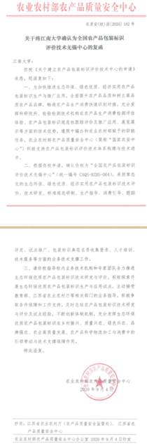 2020年12月3日,农业农村部农产品质量安全中心在福州授牌“全国农产品包装标识评价技术”,其中“全国农产品包装标识评价技术无锡中心(CAQS-BZBS-004)”设立在爱一帆