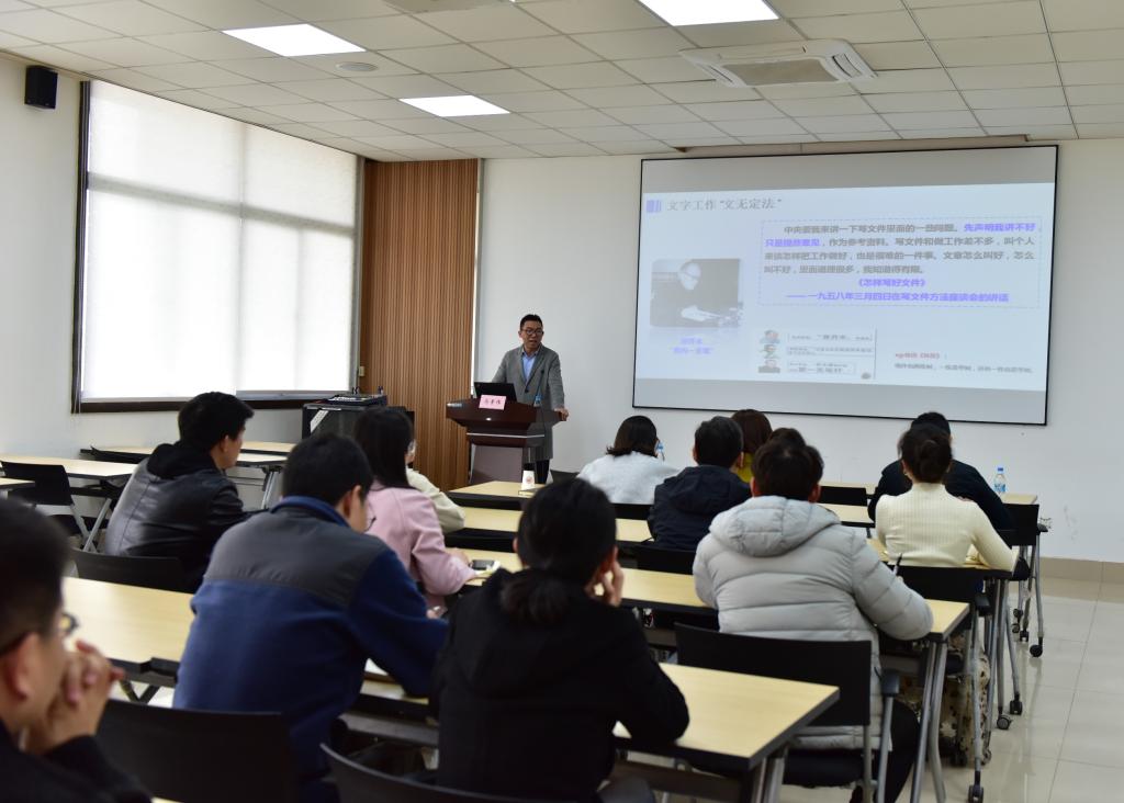 党委书记傅莉莉指出学校和学院的高质量发展的核心是人才培养质量的提高。而文字工作对行政管理人员至关重要,能够直接体现个人的思维和能力水平和单位的管理及决策水平,所以希望大家能够珍惜这次学习机会,争取学有所得。