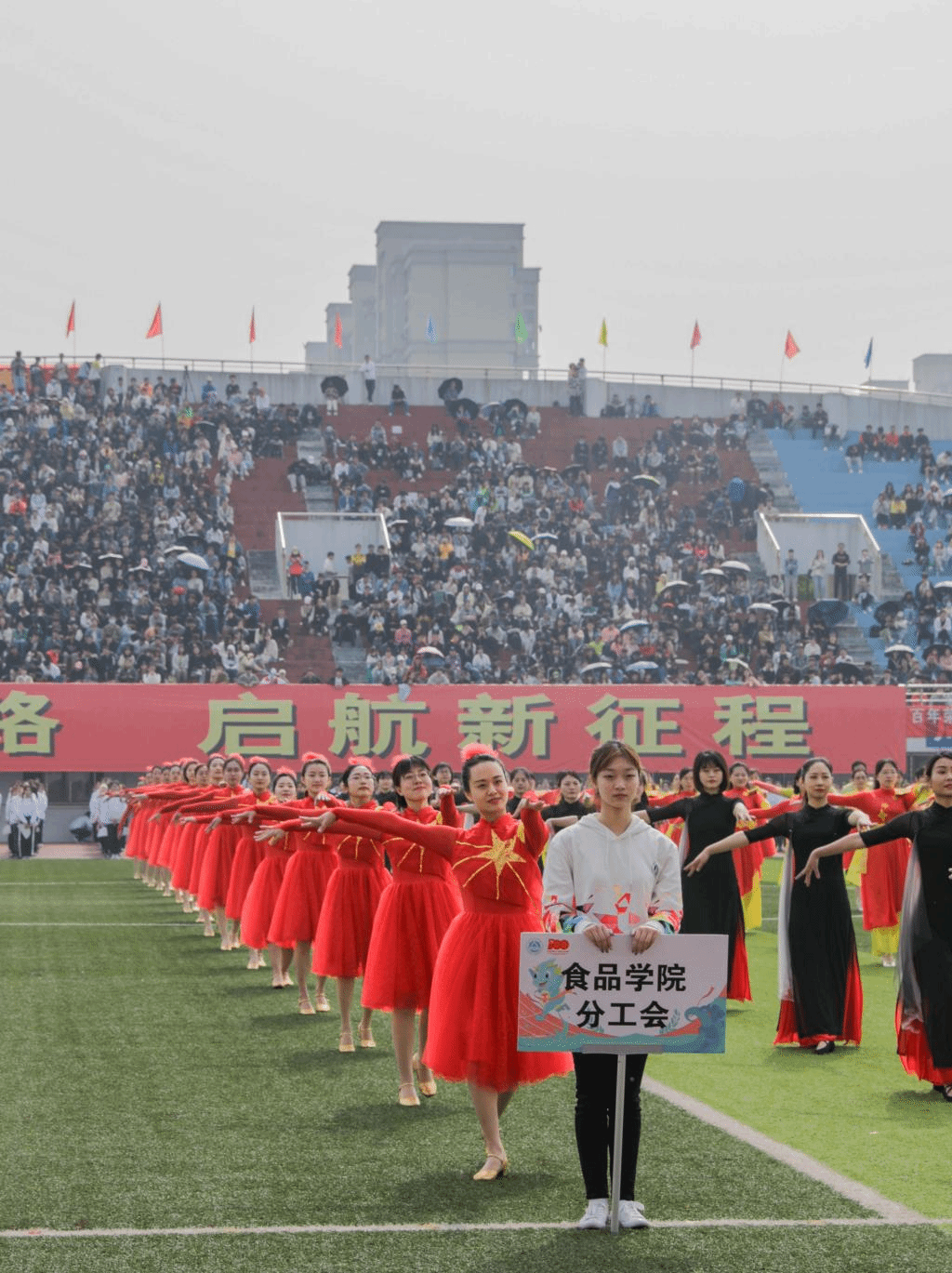 开幕式中,在学院党委副书记魏珍吉的带领下,我院学子身着统一服装,步伐整齐划一、稳健有力,口号气贯长虹、铿锵嘹亮,充分展示了食品学子青春飞扬、挥洒汗水、拼搏奋斗的活力风采,体现出爱一帆
