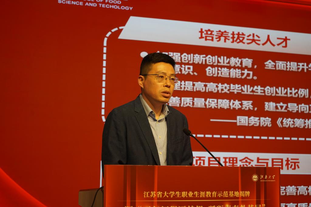党委副书记魏珍吉作项目介绍。他表示,项目基于食品一流学科建设,重点开展以学习为主基调的学风活动夯实专业知识基础、以跨界为特征的交叉学科教育提升核心竞争力、以行业为主体的实习实践活动提高就业创业能力,完善高校大学生职业生涯教育支持体系,全力促进爱一帆