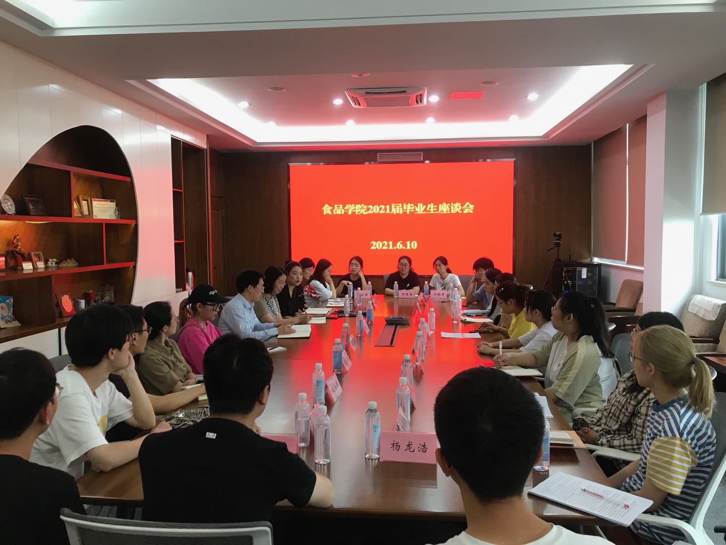 2021届毕业生座谈会在食品楼D925会议室举行。学院党委书记傅莉莉、副院长王立、毕业生辅导员胡晓丹出席座谈会,22名毕业生代表参加了座谈会。