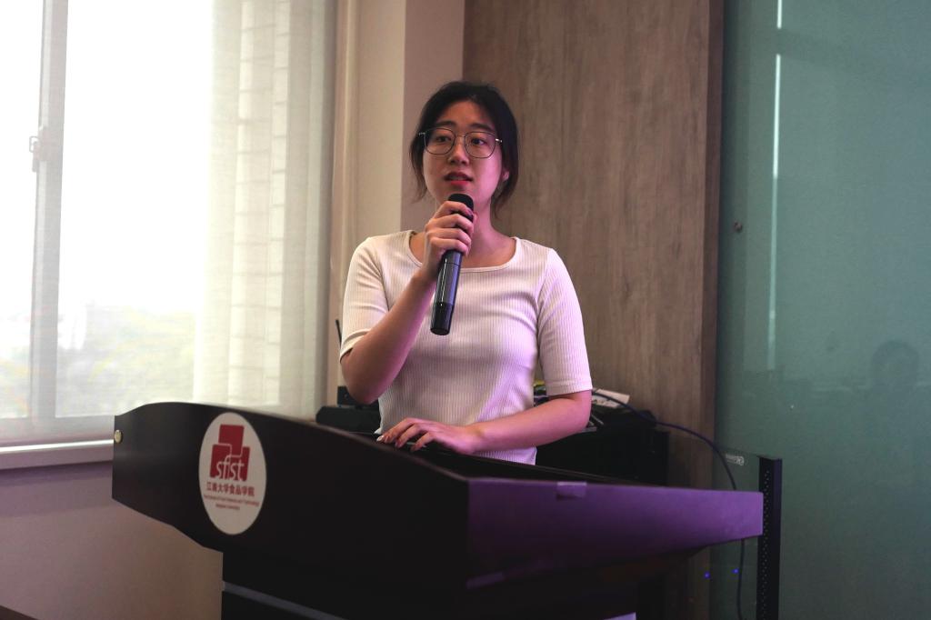 张诗佳同学介绍了食品安全“三走进”项目“用知识守护人民舌尖上的安全”的志愿服务行动。团队经过近十年打磨,开发出一套体系化食品安全课程,并根据社会需求,及时增加宣讲主题和内容。项目先后入选全国食品安全宣传周“大学生食品安全与营养中国行”重点项目,荣获江苏省优秀青年志愿服务项目称号,受邀参加“省级学会、高校科协服务创新创业成果展”、第二届江苏志愿服务交流会”省直属参展项目等。张诗佳表示,民以食为天,食以安为先,团队会继续将专业知识运用到社会实践中去,为铸就健康城墙贡献青春力量。