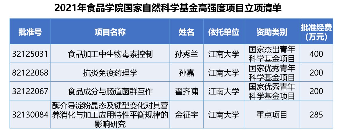 共获各类项目资助29项,其中面上项目15项,青年项目10项,杰青1项,优青2项,重点项目1项,资助总经费2179万元,立项率达29%(全国平均立项率为16.51%),其中高强度项目立项数及立项总经费创历史新高。