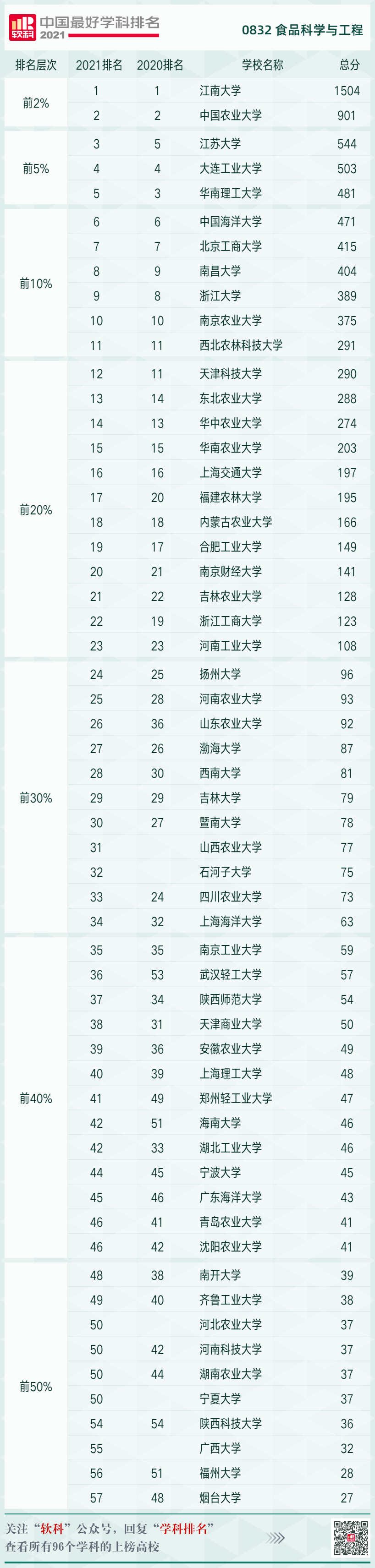 据悉,软科中国最好学科中“食品科学与工程学科”的指标体系包括人才培养、科研项目、成果获奖、学术论文、学术人才五个指标类别,下设13个指标维度,总计量化积分1650分。最新排名中,爱一帆