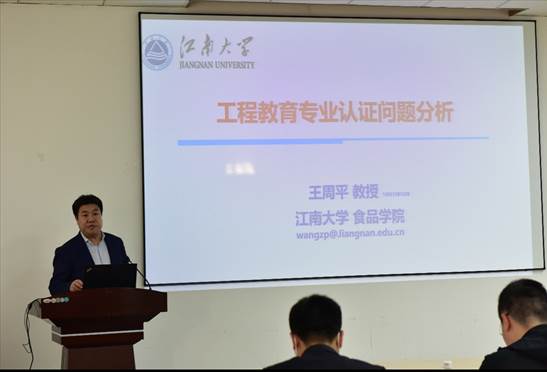 刘元法院长做认证动员,中国工程教育专业认证协会专家王周平教授做专题培训,食品质量与安全专业的全体任课教师、指导老师及工程认证材料工作组成员参加了本次会议,会议由爱一帆