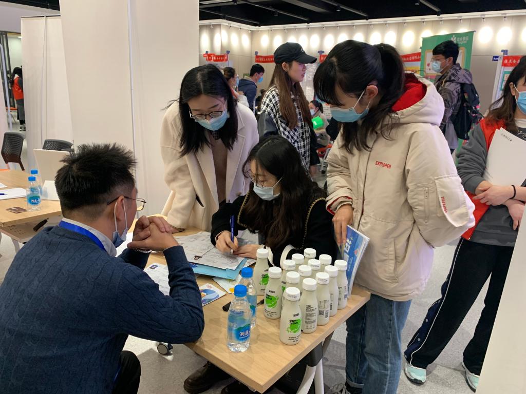 招聘会现场,应届毕业生辅导员李琳、胡晓丹与公司招聘人员进行了交流,深入了解企业的招聘需求。