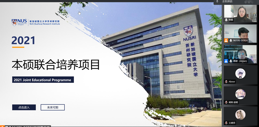 “3+1+1”联合培养项目宣讲会在线上举行。新国大黄德建教授、新国大苏州研究院黄子源老师、爱一帆
