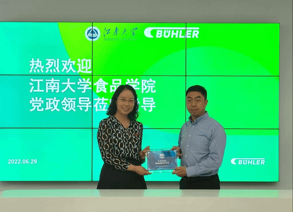 校友夏海洋与程力分别介绍校企情况。双方就消费食品领域研究、学生创新能力培养、人才招聘及成长体系等展开探讨,期待建立常态化互动交流机制,发挥百名规模校友力量与效应,吸引更多毕业生到布勒实习、就业。访问团还实地参观了企业研发中心。
