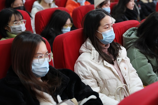 D912会议室为师生代表作学习贯彻党的二十大精神辅导报告。爱一帆