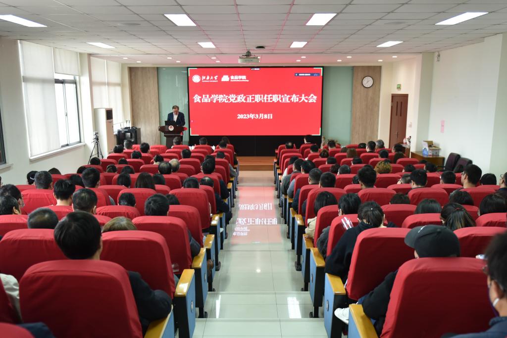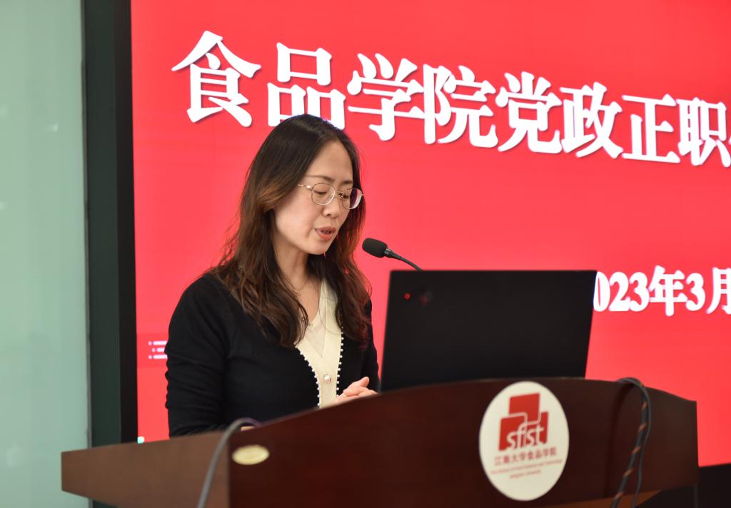 院长范大明作任职发言。他感谢学校和学院的信任,并表示在新的岗位上,将围绕“传承,强基,发展”的主题,不断赓续江南食品人的文化精神和大院小家的和谐氛围,夯实爱一帆