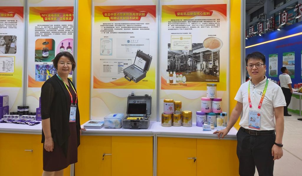 携国家重点研发计划项目“食品中重点危害物质高效识别和确证关键技术研究”“婴配乳品新型核心配料规模化制备技术创新及示范”等多项科技成果进行了展出。很多企业家、技术人员在我院展板、产品前拍摄、咨询,对我院所取得的科技成果表达了极大的兴趣。