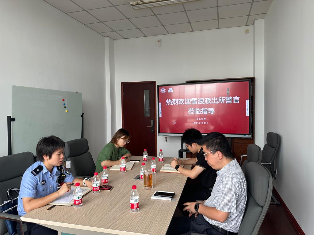 开展调研,指导校园反诈工作。党委副书记、副院长李雷,学工办主任兼分团委书记李金杰,研究生辅导员胡卉君,本科生辅导员张任参与座谈交流。