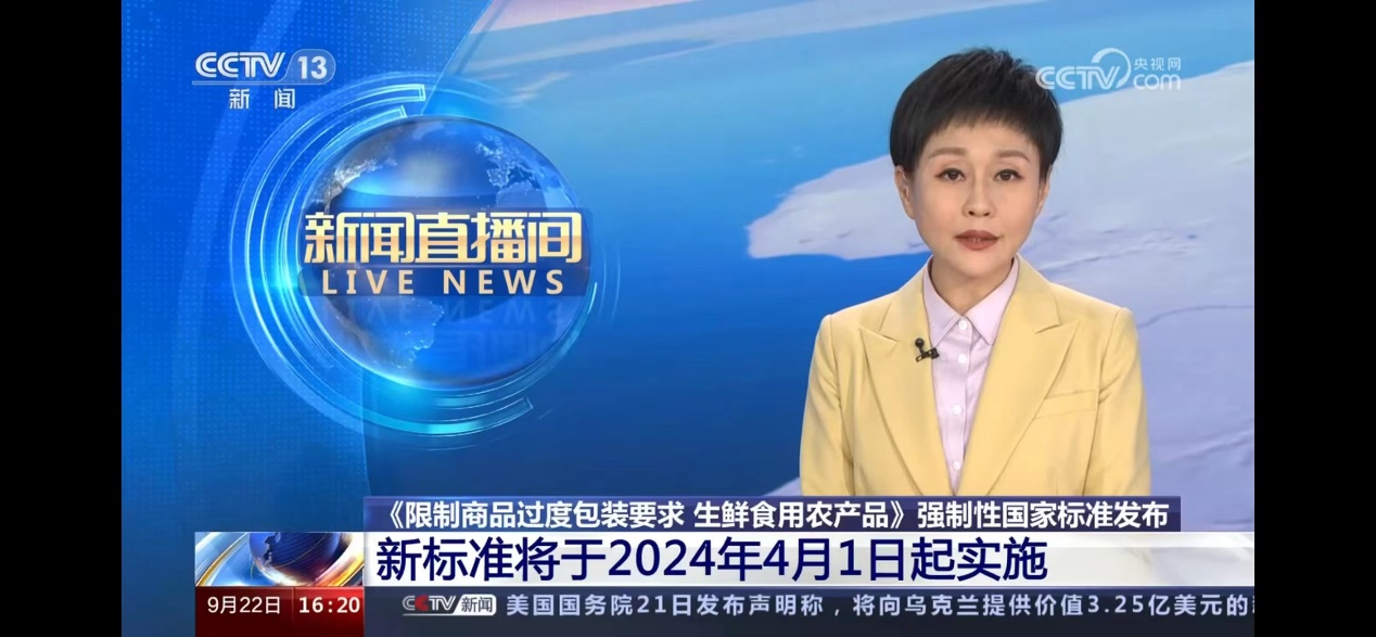 作为第一参与单位制定的《限制商品过度包装要求生鲜食用农产品》(GB 43284-2023)强制性国家标准,由国家市场监督管理总局(国家标准化管理委员会)批准发布,并在央视新闻直播间、中国经济网、新华社、中国之声等各大平台报道。该标准将于2024年4月1日起正式实施,并为强化商品过度包装全链条治理、引导生鲜食用农产品生产经营企业适度合理包装、规范市场监管提供执法依据和基础支撑。