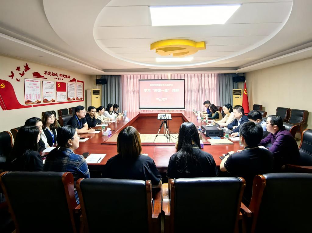 随后召开“两弹一星”精神学习座谈会,会议由傅莉莉主持。范大明详细介绍“两弹一星”精神的历史由来与代表人物,并指出“两弹一星”精神是中国共产党人精神谱系的重要组成部分,具有重大的历史意义与时代价值。