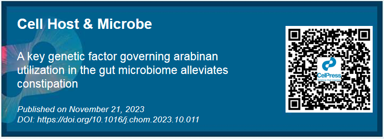 陈卫院士研究团队的最新研究发现,具有α-L-arabinofuranosidase(abfA)基因簇的长双歧杆菌能够通过提高肠道菌群对阿拉伯聚糖的利用而缓解宿主功能性便秘,为功能性便秘以及其它肠道功能异常的治疗提供了新的靶点和思路。相关研究论文已于2023年11月22日刊登在Cell Press细胞出版社旗下期刊——《细胞·宿主和微生物》(Cell Host & Microbe)。爱一帆