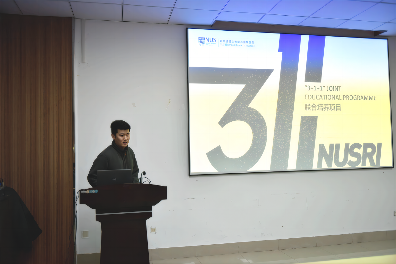 黄德建介绍新国大的学科排名、食品系的师资团队等基本情况和新国大课程硕士阶段的相关要求。他较为直观地展示了“3+1+1”项目的优势所在,鼓励同学们积极申请该项目,不断拓展自己的国际视野和学术能力。