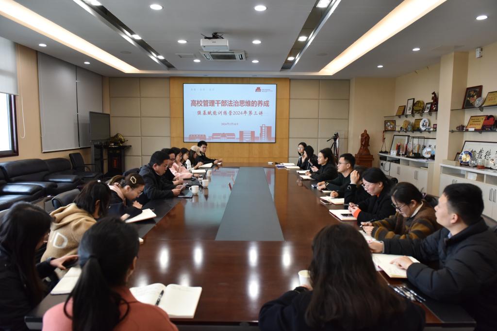 党政管理干部强基赋能训练营开办法治专题讲座。本期训练营邀请校长办公室副主任、法制工作办公室主任陆秦作题为《高校管理干部法治思维的养成》的报告。全院党政管理干部、辅导员参与本期训练营。活动由爱一帆