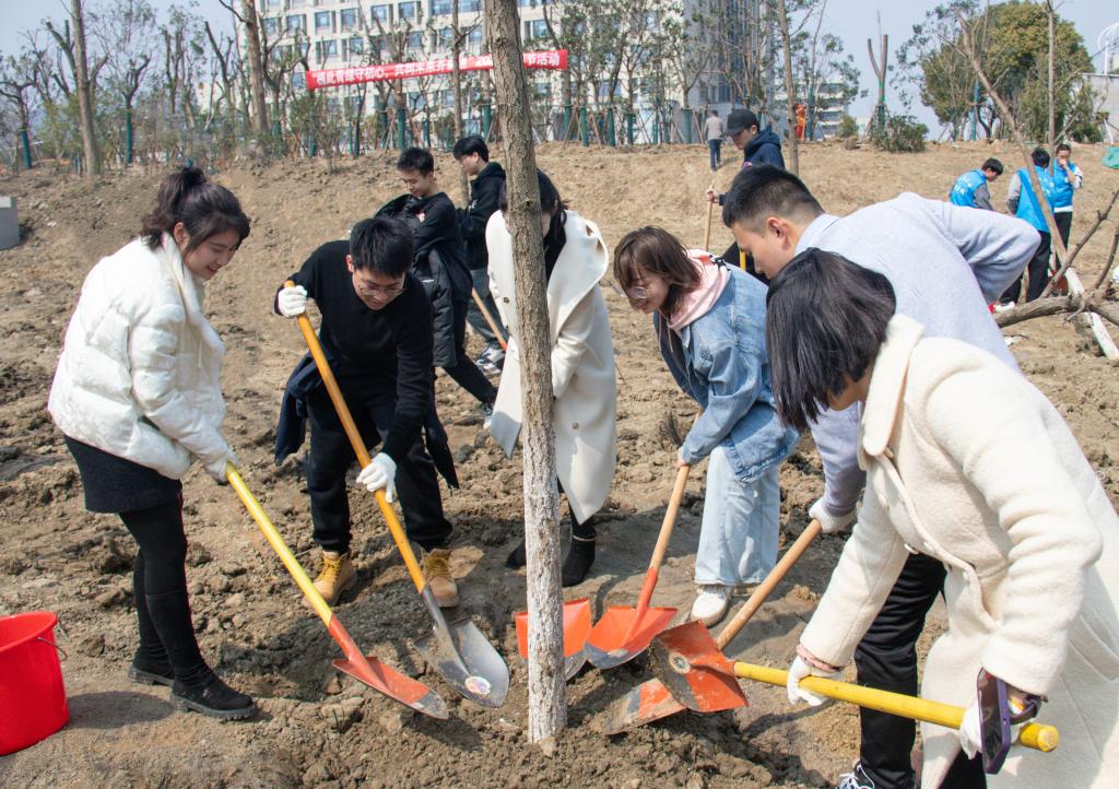 、理学院、人工智能与计算机学院在臻善楼西北侧共同举办“植此青绿守初心,共树未来齐奋进”植树节活动。爱一帆