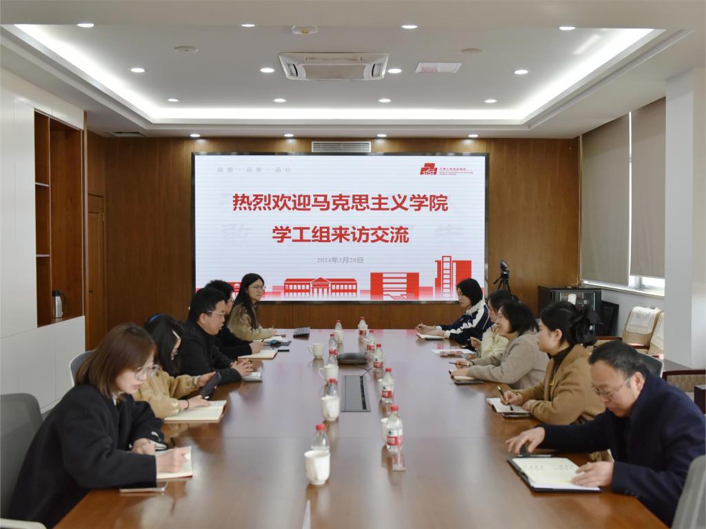 马克思主义学院党委副书记兼副院长郑丹丹,学工办主任兼分团委书记周琳,辅导员孙西平、王圣舟,分团委副书记(兼)肖洋来访我院。党委副书记兼副院长李雷,学工办主任兼分团委书记李金杰,辅导员胡卉君、张任、崔家玮参与座谈交流。双方分别介绍工作理念、思路、举措和成效,并就跨学科之间的人才培养交流、学生工作互动、思政教育融合进行深入探讨,期待未来在党团教育活动、创新创业竞赛等领域加强合作,实现共赢。