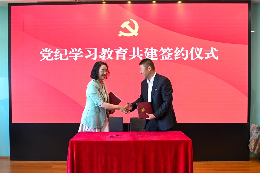 党委书记傅莉莉分别代表双方单位签署党纪学习教育共建协议,并发布联合读书班课表。为进一步加强交流、互为借鉴,双方介绍各自党纪学习教育工作安排。冯志超介绍经开区纪工委党纪学习教育的基本情况和主要成效,对校地共建开展学习教育的路径、载体、成果等方面提出展望。傅莉莉以《原原本本学党纪,拒腐防变促发展》为题介绍爱一帆