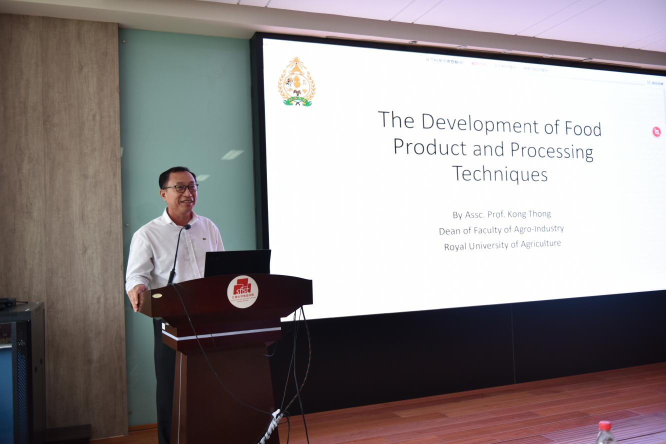 座谈会后,Kong Thong作题为“食品和加工技术的发展”的学术报告。他深入分析当前食品和加工技术的最新动态和趋势,并分享柬埔寨在该领域的研究成果和经验。