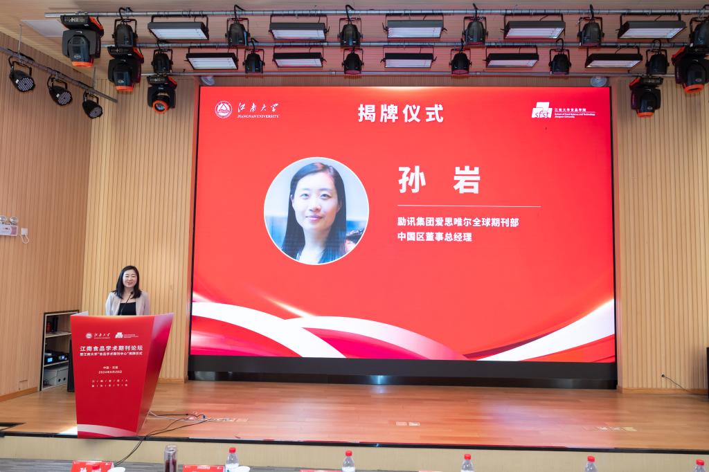 举办“食品学术期刊中心”揭牌仪式。中国工程院院士、校长陈卫,全国政协委员、中国科学院文献情报中心研究馆员刘筱敏,中国高校科技期刊研究会名誉理事长、国际科学/技术与出版商协会中国顾问颜帅,励讯集团Elsevier全球期刊部中国区董事总经理孙岩,高级战略合作经理张丹丹,Elsevier食品期刊出版人李莎莎,爱一帆