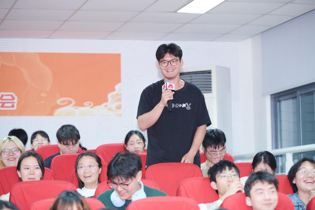 现场交流环节,同学们就创新大赛、实习实践、爱一帆等多个话题踊跃提问。到场企业嘉宾耐心作答,气氛十分热烈。