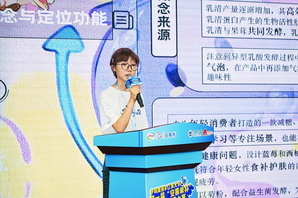 76支队伍提交的82项创意作品。历经初赛遴选TOP30,通过复赛决胜TOP15,最终举办总决赛。备赛过程中,企业研发、人力导师一对一辅导赋能,行业专家开展实战公开课。最终,《谷酿·双蛋白花果酸奶碗》斩获“最佳商业化大奖”;《益花益叶》斩获“最佳创意大奖”;《豆蔻酿》斩获“匠心独运大奖”;《好事花生芽》等6项作品获“优胜团队奖”。总决赛现场气氛热烈,精彩纷呈,企业、学校联合评审专家组对参赛学子和获奖作品予以充分认可和高度评价。
