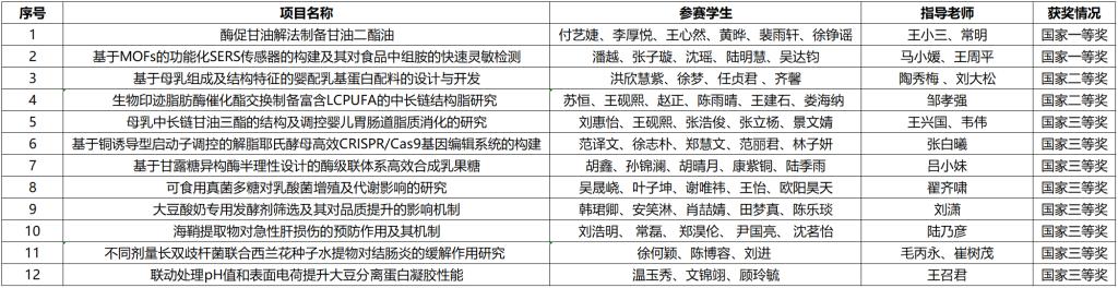 食品学子表现优异,共12个项目斩获奖项,其中全国一等奖2项、二等奖2项、三等奖8项。