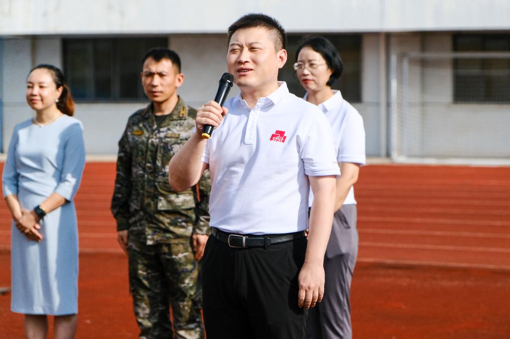 范大明进行慰问讲话,对全体参训学生展现出的纪律意识和集体荣誉感给予高度赞扬,并提出三点希望:一是关注国家大事,与时代发展同频共振;二是以军训为契机,强健体魄、锤炼品质;三是珍惜军训时光,让青春在千磨万砺中绽放。他预祝同学们圆满完成军训各项任务,彰显江南食品人的卓越风采,努力成长为新时代全面发展的高素质人才。