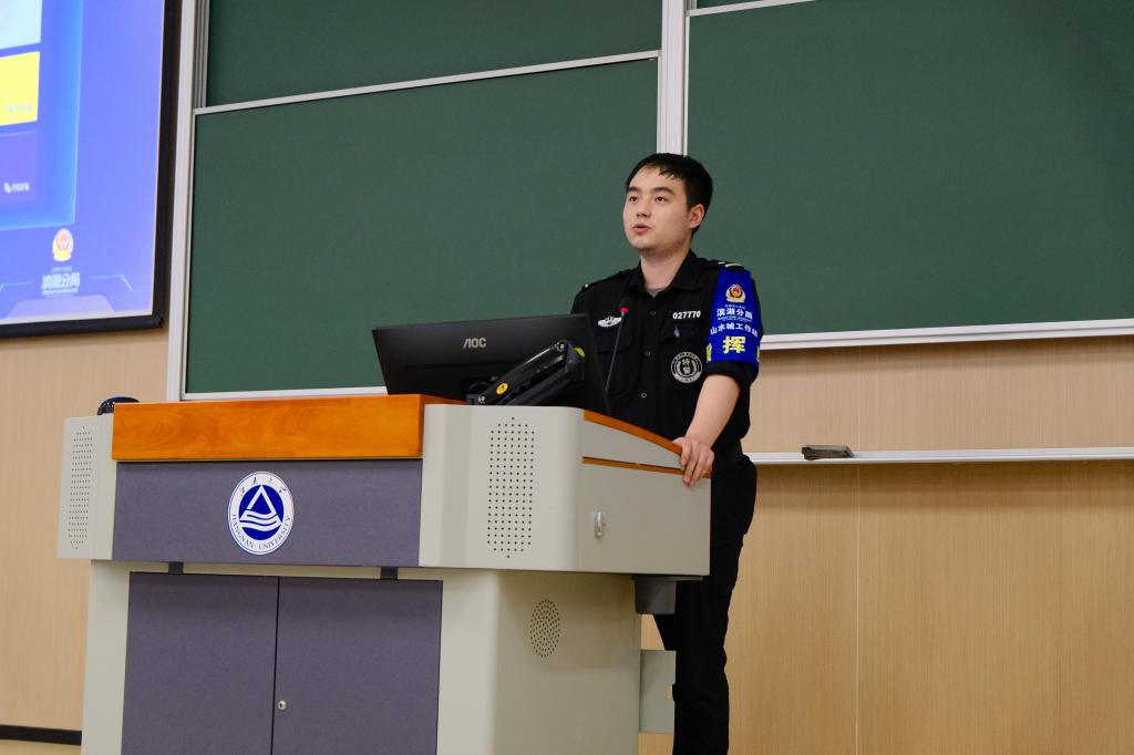 在第二教学楼2A127教室举办2024级本科生安全反诈教育讲座。本次讲座邀请山水城警务站钱谕警官作为主讲嘉宾,由2024级本科生辅导员周雨洁主持。钱警官以其深厚的理论功底和丰富的实践经验,为全体2024级本科新生带来了一堂生动而深刻的安全课程。