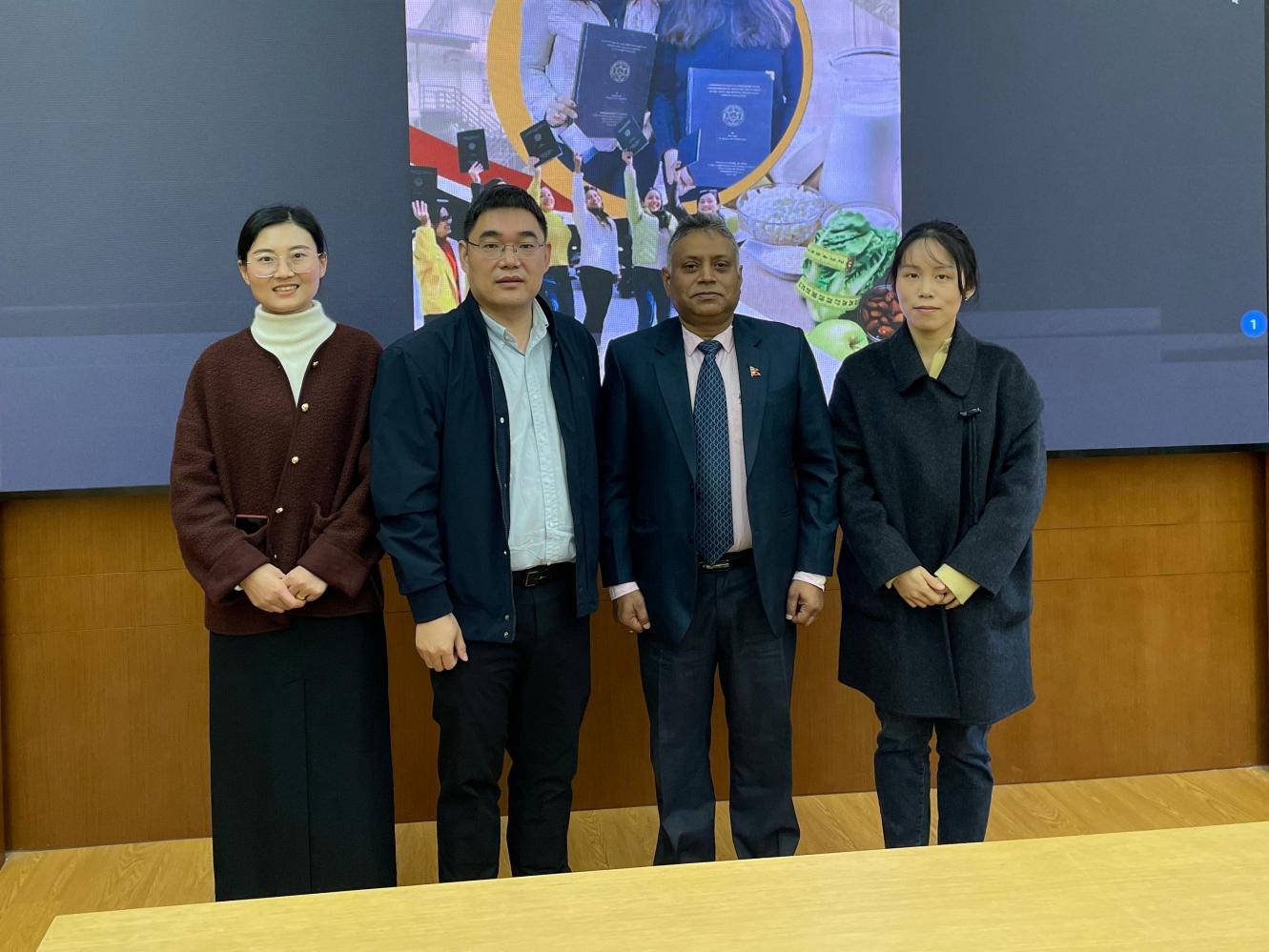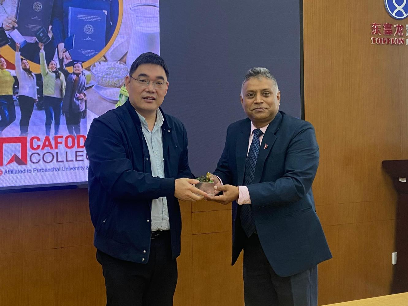 赵伟对Bhakta PralhadPandey一行表示热烈欢迎,并介绍学院国际化合作交流项目的发展情况。Bhakta Pralhad Pandey介绍CAFODAT College的基本情况,提出加强两院师生进一步交流合作的愿景。双方还就学生交流交换、联合科研等予以深入探讨。