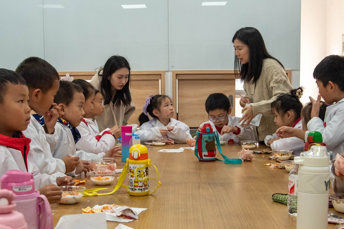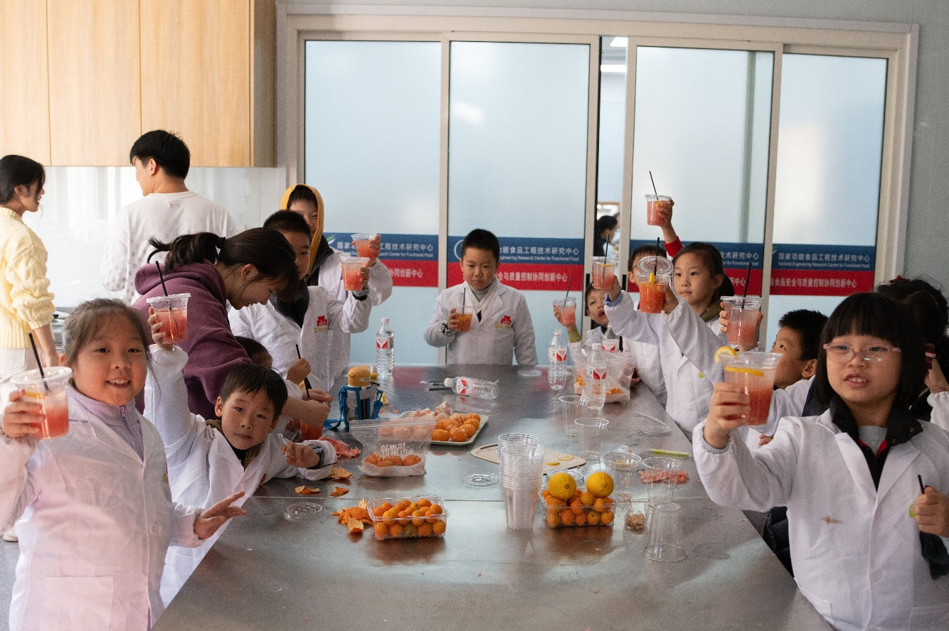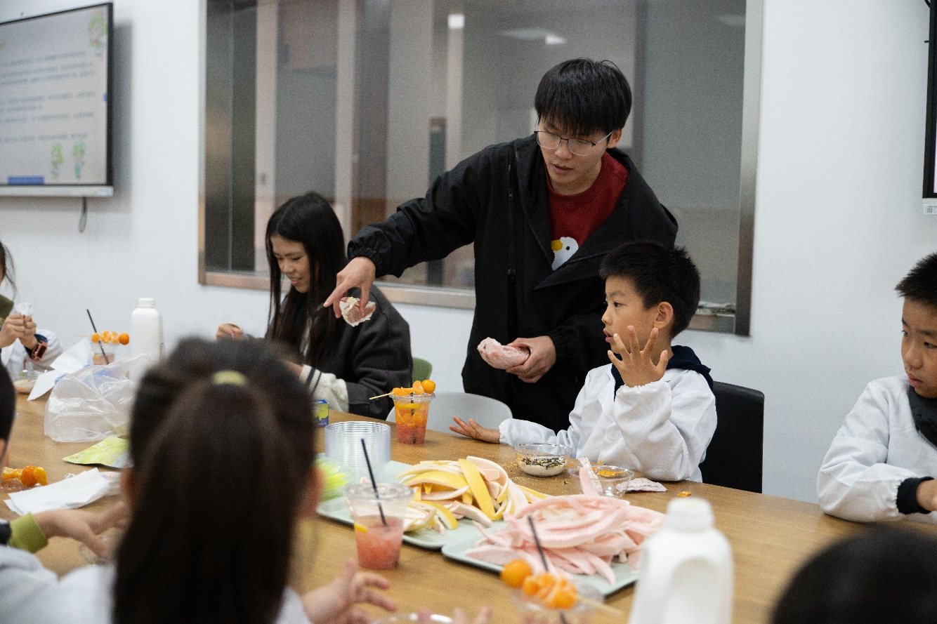 分工会在校工会的支持下,与青芽食育大学生科普社团联合打造“关爱江小娃——‘食’趣科普实践工坊”系列活动,计划每月开展1期,一年12期。今年11月,首期活动“大柚作为——探秘柑橘类水果背后的故事”在我院食品工坊顺利举。青芽食育团队通过普及柚子及其所属柑橘类水果中的食品科学知识,指导小朋友制作柚子创意美食,为“江小娃”带来了一场兼具科学、创意与趣味的“食”趣盛宴。