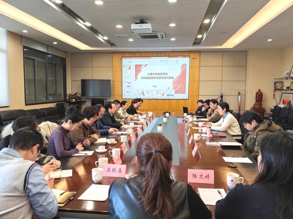 孙秀兰汇报学院本科教育教学改革的实践与挑战,从招生工作、教学组织、专业及课程建设、教学改革等方面予以深入剖析,指出学院在有组织的本科教学层面取得一定成效,包括不断优化教师发展与团队建设、开展创新创业教育,利用数字化资源、加快智慧课程和数字教材建设等。她同时指出面临的难题和调整,例如“3+N食品AI卓越创新班”的发展需要更加完善的政策与相关配套支持、中外合作办学的质量提升与差异化教学、教学实验空间紧张、名师和青年教师储备不足、跨院合作有待进一步畅通等。