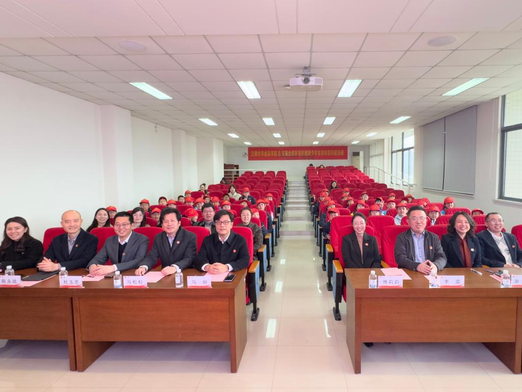 党委书记傅莉莉,副书记兼副院长李雷,副院长谢云飞、程力,分工会副主席刘静,学工办副主任吴爽以及来自金桥新闻学院的小记者、“青芽食育”科普社团的大学生共同出席活动启动仪式。仪式由学院科普秘书叶舒迪主持。
